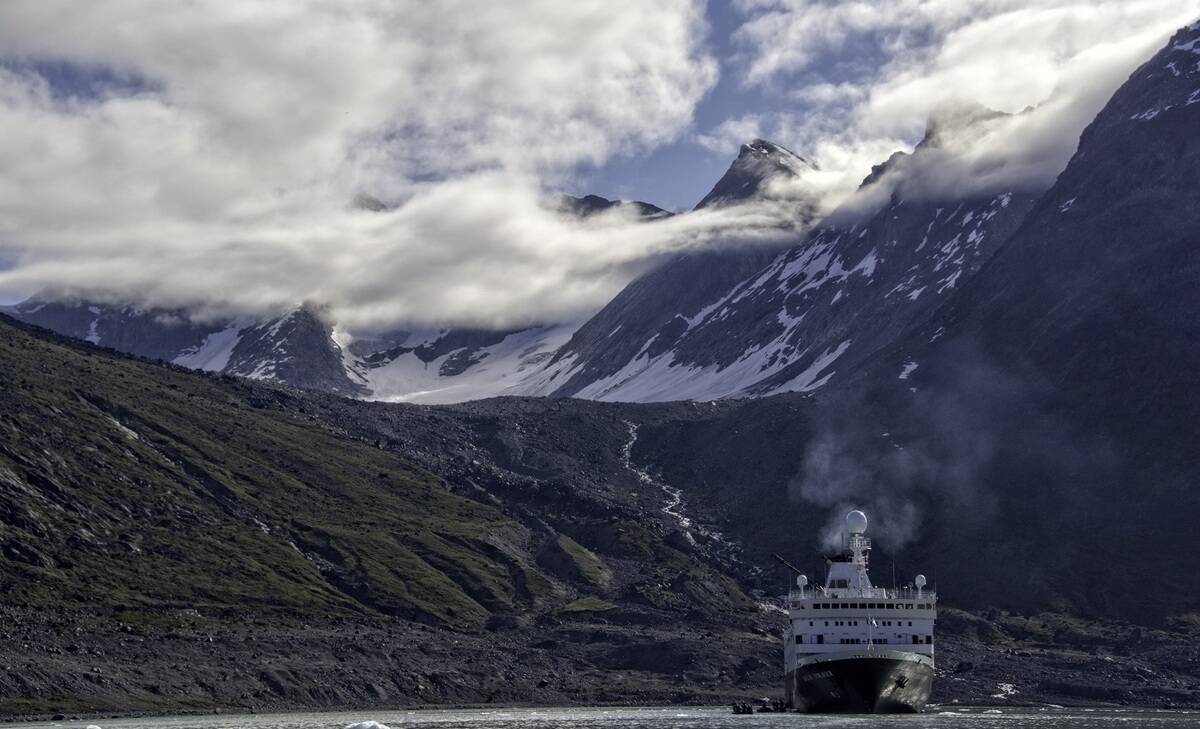 After your charter flight from Toronto, transfer by Zodiac to your expedition vessel. Begin your voyage sailing through Kangerlussuaq Fjord, a 190‑kilometre corridor of mountains and glaciers gleaming in reflected light. Cross the Arctic Circle as you head seaward. The air is sharp and bright, the sense of beginning unmistakable.