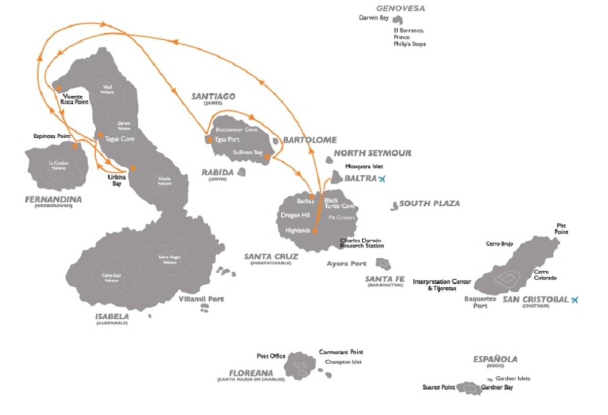 Departure from Quito or Guayaquil to Baltra Island (2 ½ hour flight). Arriving in the Galapagos, passengers are picked up at the airport by our naturalist guides to take advantage of the time in the archipelago.