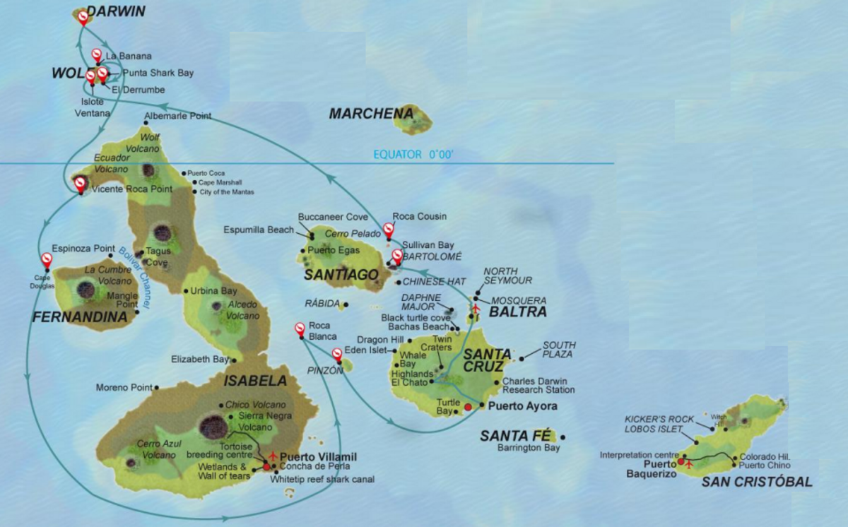 Your guide will meet you at the airport, assist you with the luggage and accompany you on the short bus ride to the Baltra dock. Here you will climb aboard the yacht Aqua. After greeting the crew and the captain, your cabins will be assigned to you and then you will enjoy your first lunch onboard.